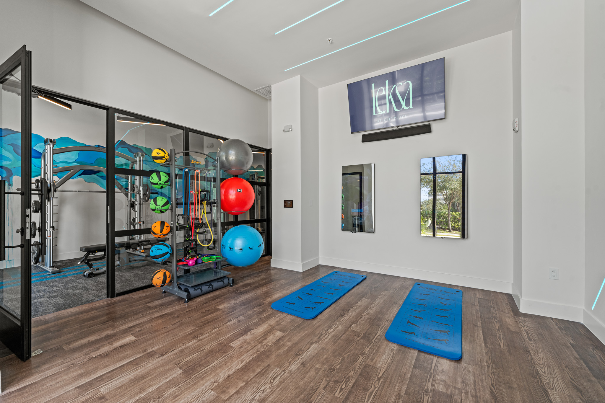 One of Tony Cameron’s most well-received projects of 2025 was creating a new fitness space for the Leksa at City Place in Florida. The fitness center is bright and tropical with loads of options… and some inspirational wall art… which we always love!